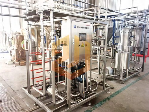 啤酒殺菌時(shí)利用高壓啤酒泵送入二段式板式換熱器預熱段,與已完成殺菌的熱啤酒預加熱至62℃左右,再經(jīng)過(guò)高溫保溫段用85℃的熱水將啤酒加熱到78℃,在保溫管段保溫30秒后達到巴氏殺菌單位25pu值,然后再被預熱的冷啤酒降溫至4℃,進(jìn)入緩沖罐準備灌裝。板式殺菌機組采用高精度的數控調節,自動(dòng)控制和安全保護措施,并可與CIP系統配合進(jìn)行設備自動(dòng)清洗。